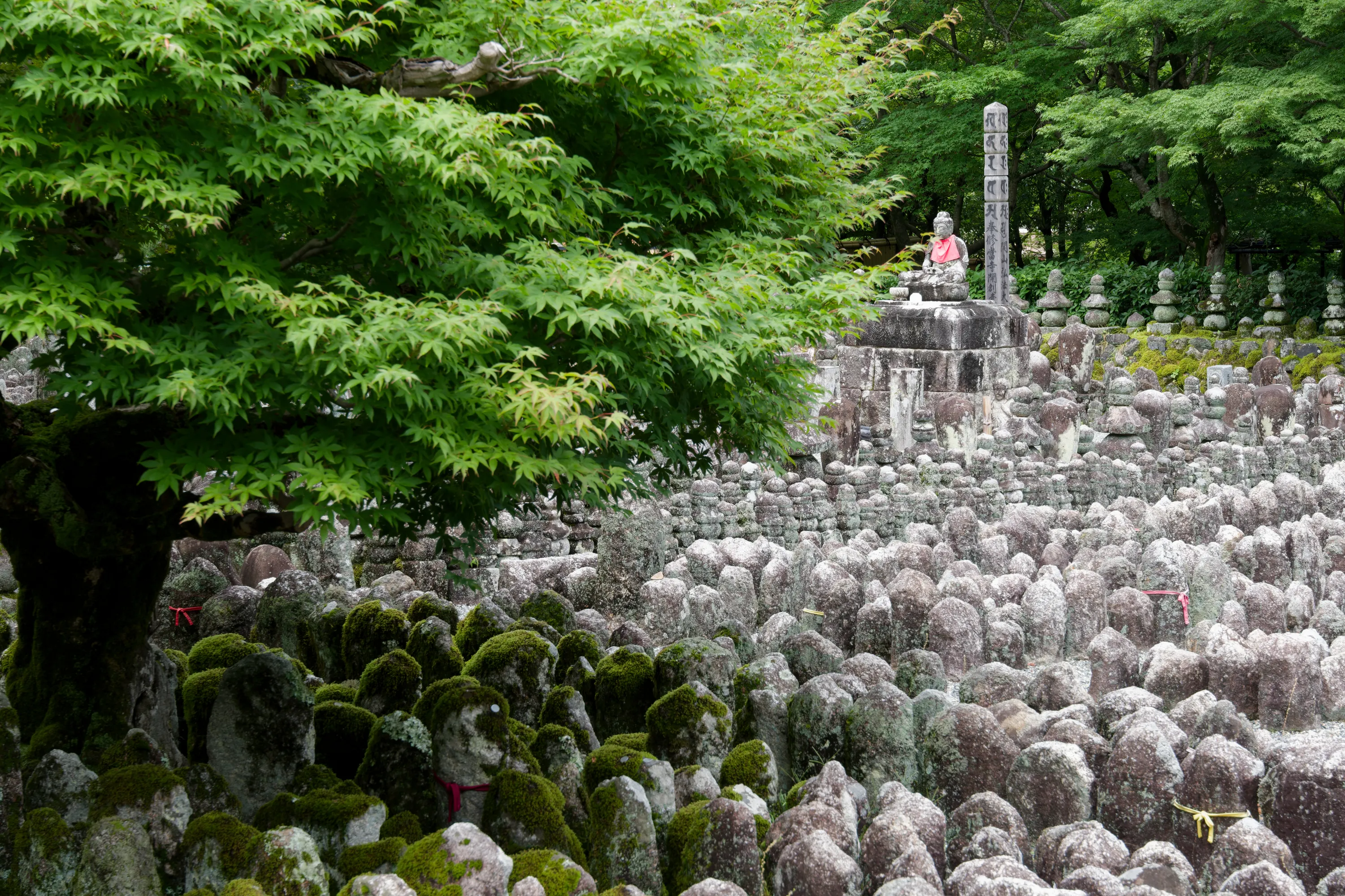 Stone Pagoda and stone memorial markers at Adashino Nenbutsu-Ji Temple