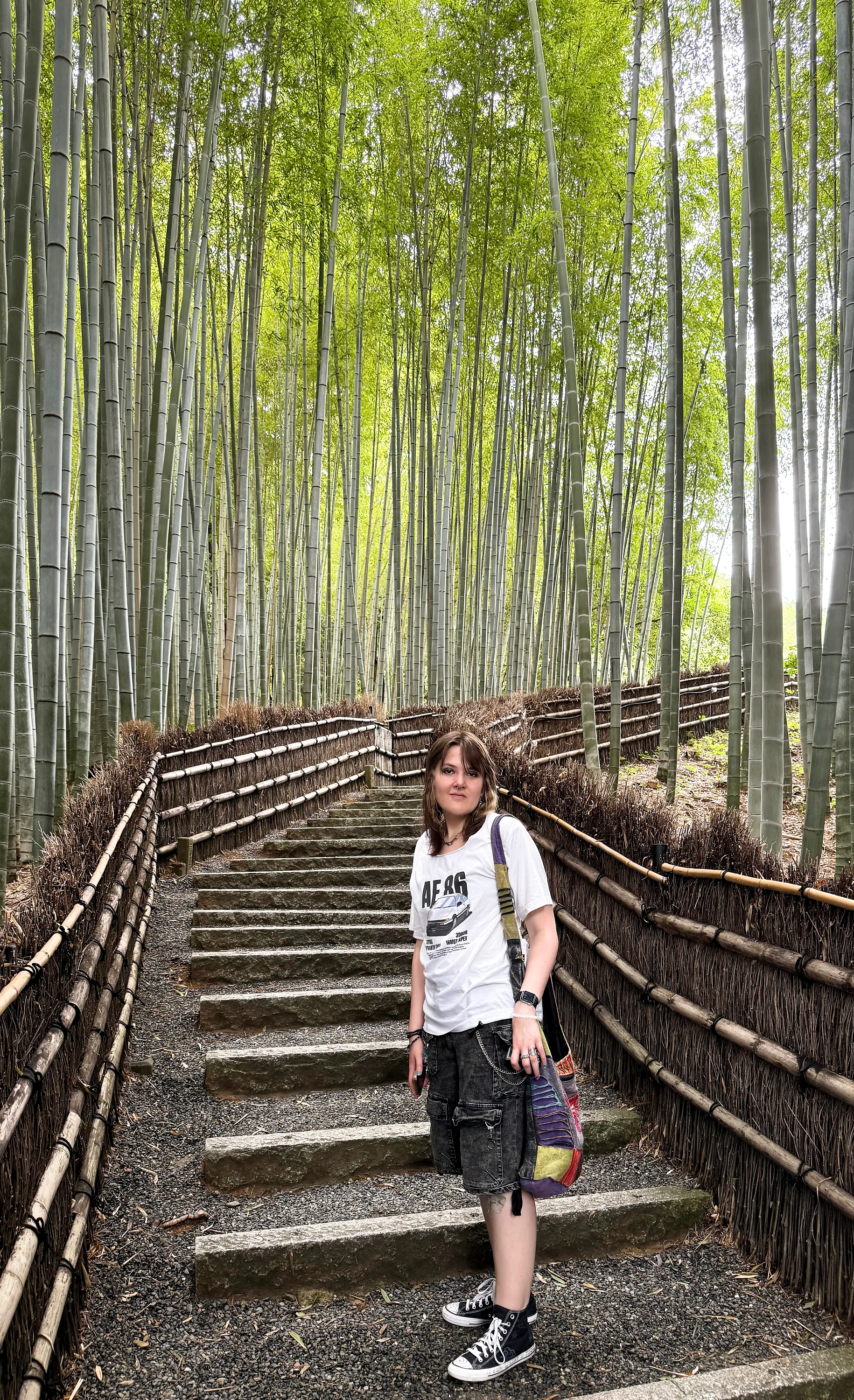 Olivia in the bamboo forest at Adashino Nenbutsu-Ji Temple Bamboo Forest outside of Kyoto. Shot on my iPhone 16 Pro Max.