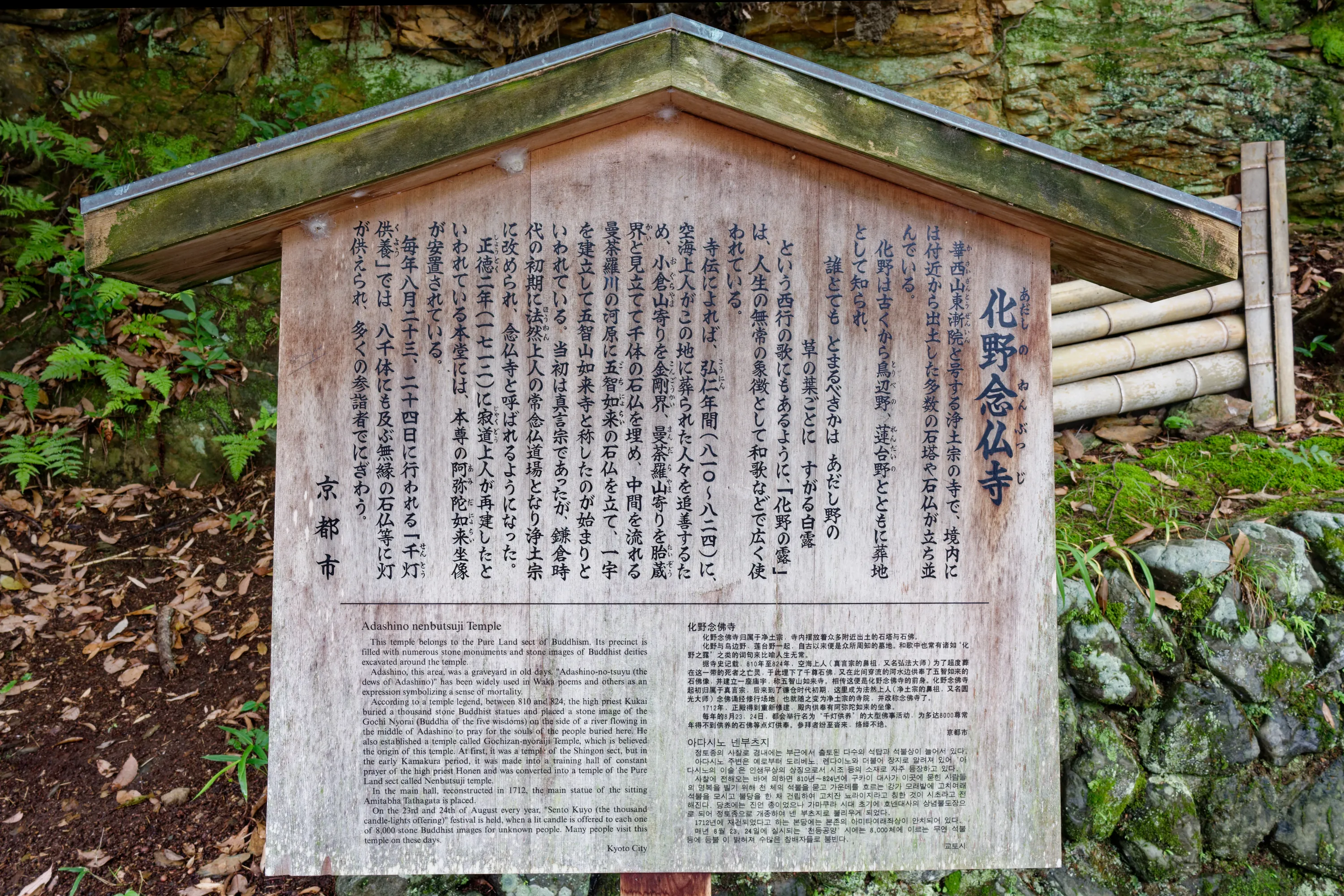 The sign at the entrance in Adashino Nenbutsu-ji Temple in Kyoto.