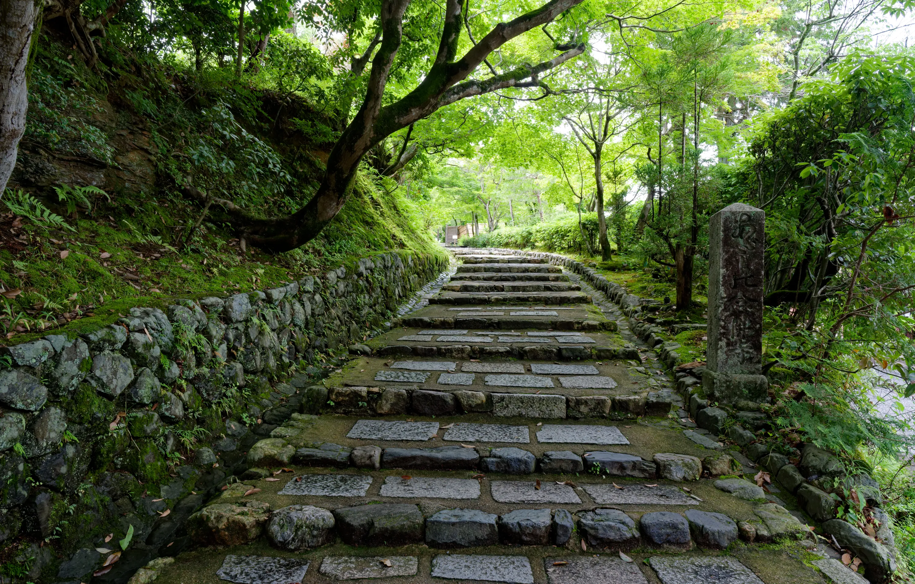 Stairs at the entry to Adashino Nenbutsu-Ji Temple in Kyoto.