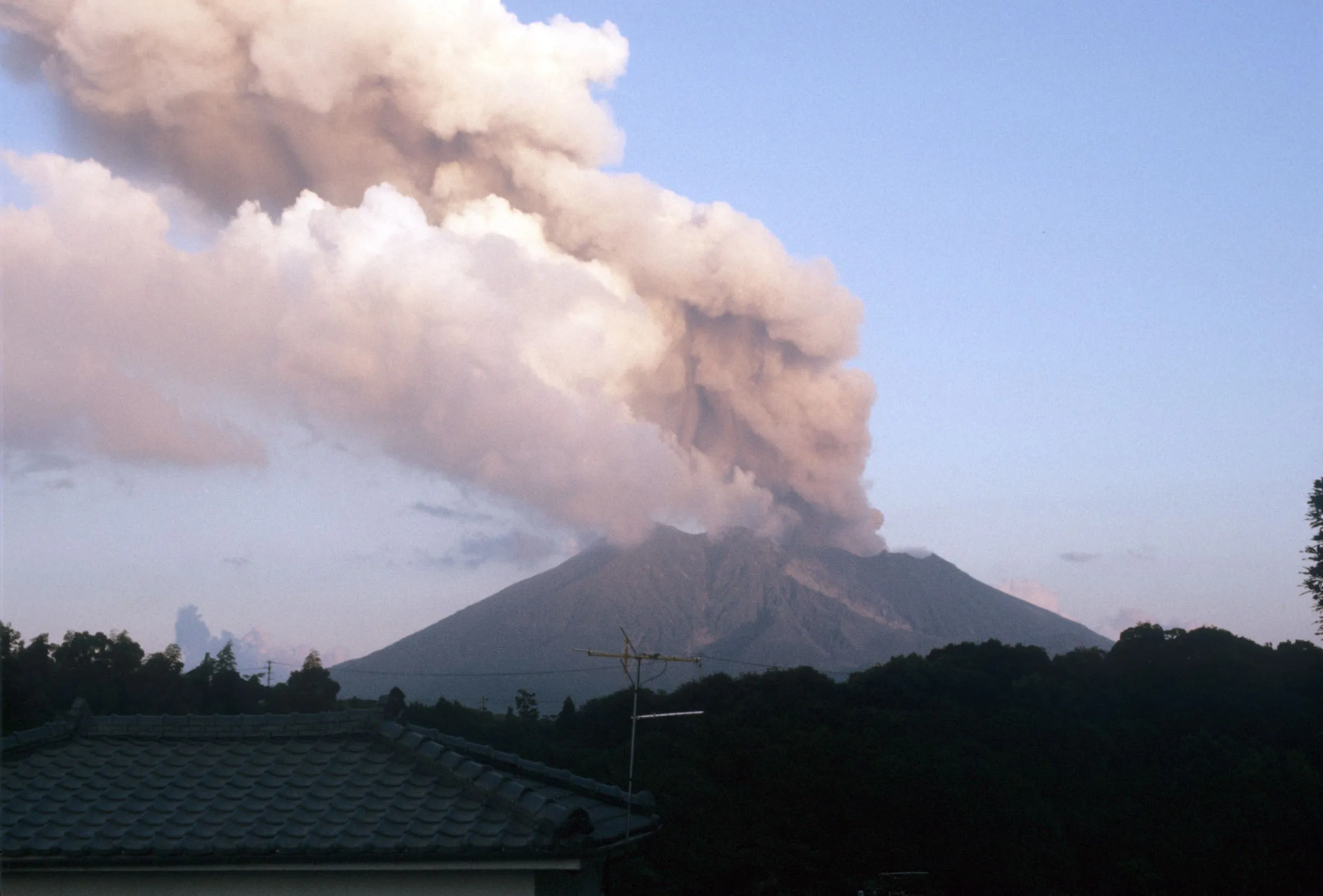 This is a view of Sakurajima from our house in Yoshino, exact year unknown. It would have been between 1975 and 1977, I think. Photo taken by my dad.